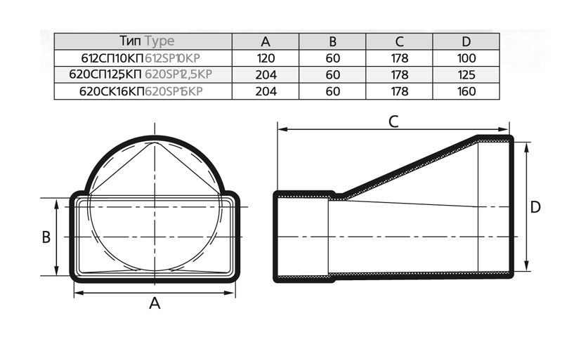 Соединитель эксцентриковый прямоугольного воздуховода 60х204 с круглым D160