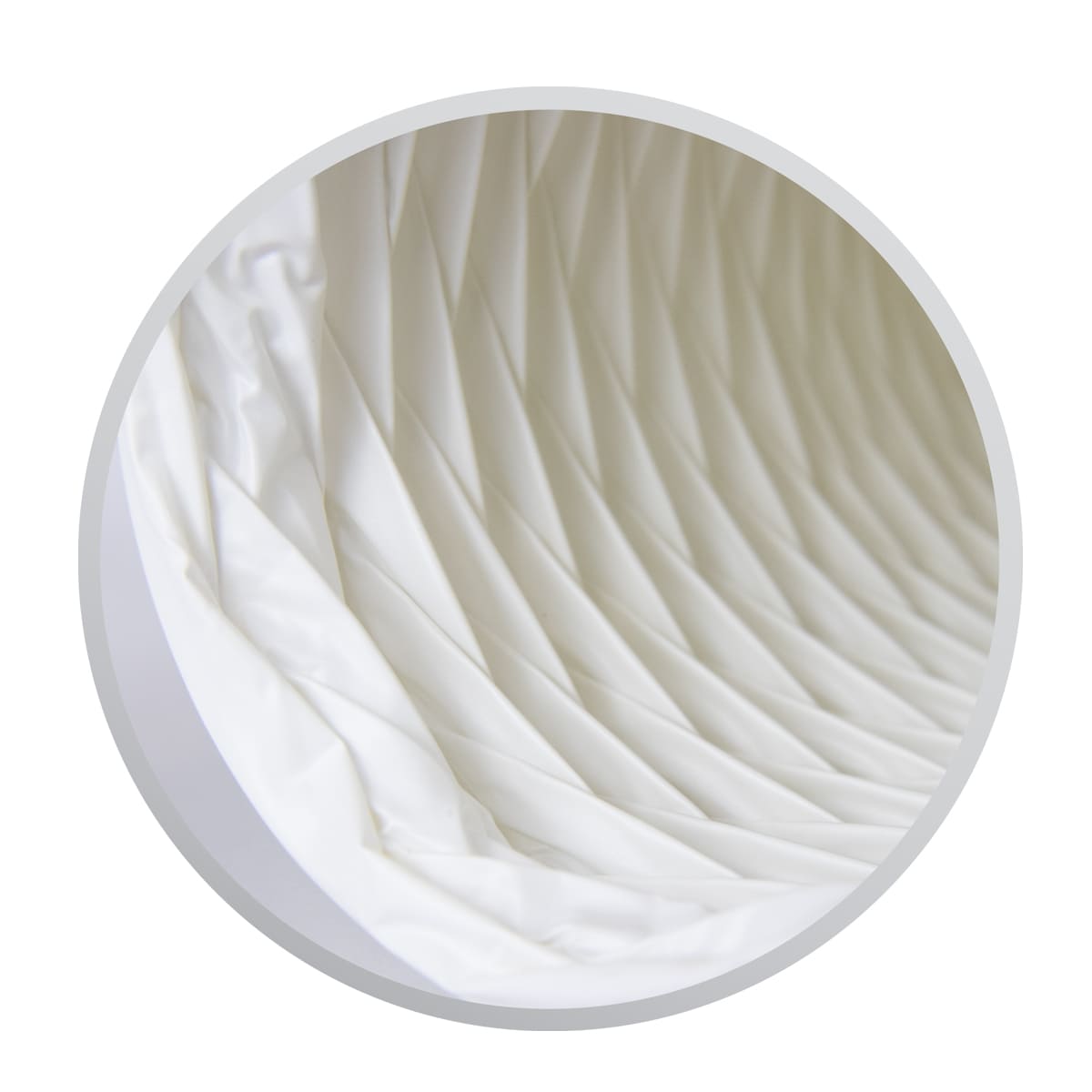 Толщина ПВХ-материала и спирали PVC больше, чем у полимерных воздуховодов большинства других производителей. Они способны поглощать длительную вибрацию и выдерживать максимальное рабочее давление +3000 Па.